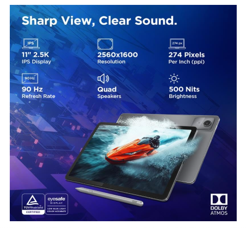 • Display:- 11 Inch Screen | 2.5K Display | Resolution: 2560x1600 | 500nits Brightness | 72% NTSC | Anti-Reflection | TÜV Lowblue Light